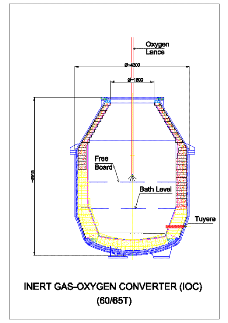 The steel refining converter is a duplex or two stage process. The molten metal will be premelted in any premelting furnace and charged into a refractory lined converter. Exact calculated amount of process gas (Oxygen, Nitrogen and Argon) are blown through submerged tuyeres to achieve optimum thermodynamic and kinetic conditions to produce value added steel.